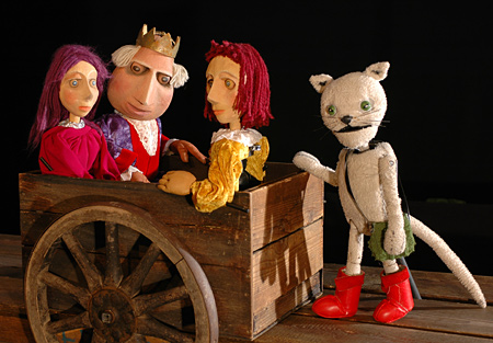 "Einst lebte ein Müller mit seinen Söhnen in einer alten Mühle..." In sieben Szenen wird das bekannte Märchen erzählt – von einem, der einen gewitzten Kater erbt und am Ende ein Königreich gewinnt. Bis dahin passiert einiges: Bei einem Schuster kauft der Kater seine Stiefel, dem immer hungrigen König bringt er Rebhühner – und der überhebliche Zauberer verwandelt sich in einen Elefanten, einen Löwen und dummerweise auch in eine Maus. Schließlich wird der zum Marquis von Carabas aufgestiegene Müllersohn mit der schönen Prinzessin glücklich...